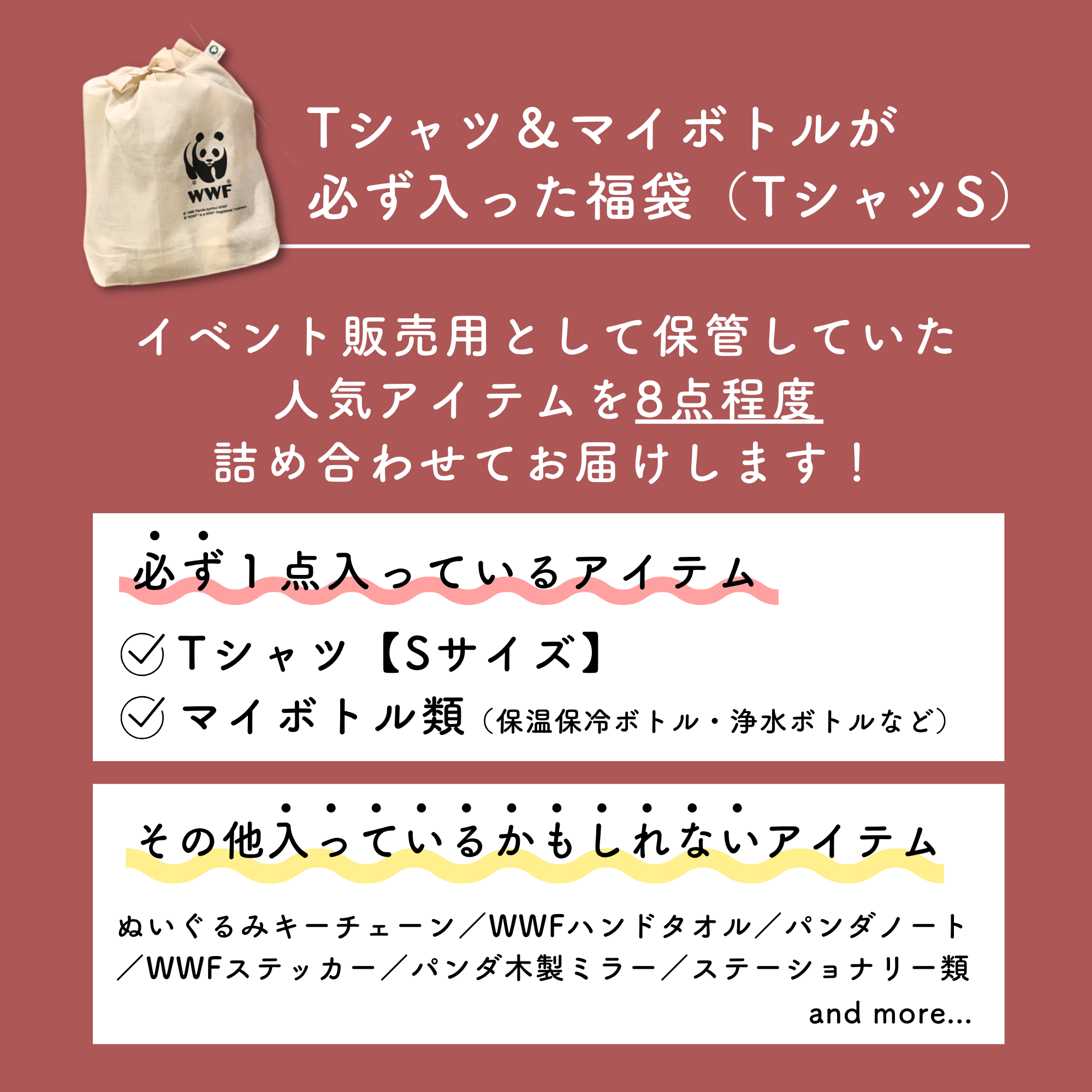 PANDA SHOPオリジナルのTシャツとマイボトル(保温保冷ボトルや浄水ボトル等)が必ず入った、とってもお得な『福袋』が数量限定で登場!