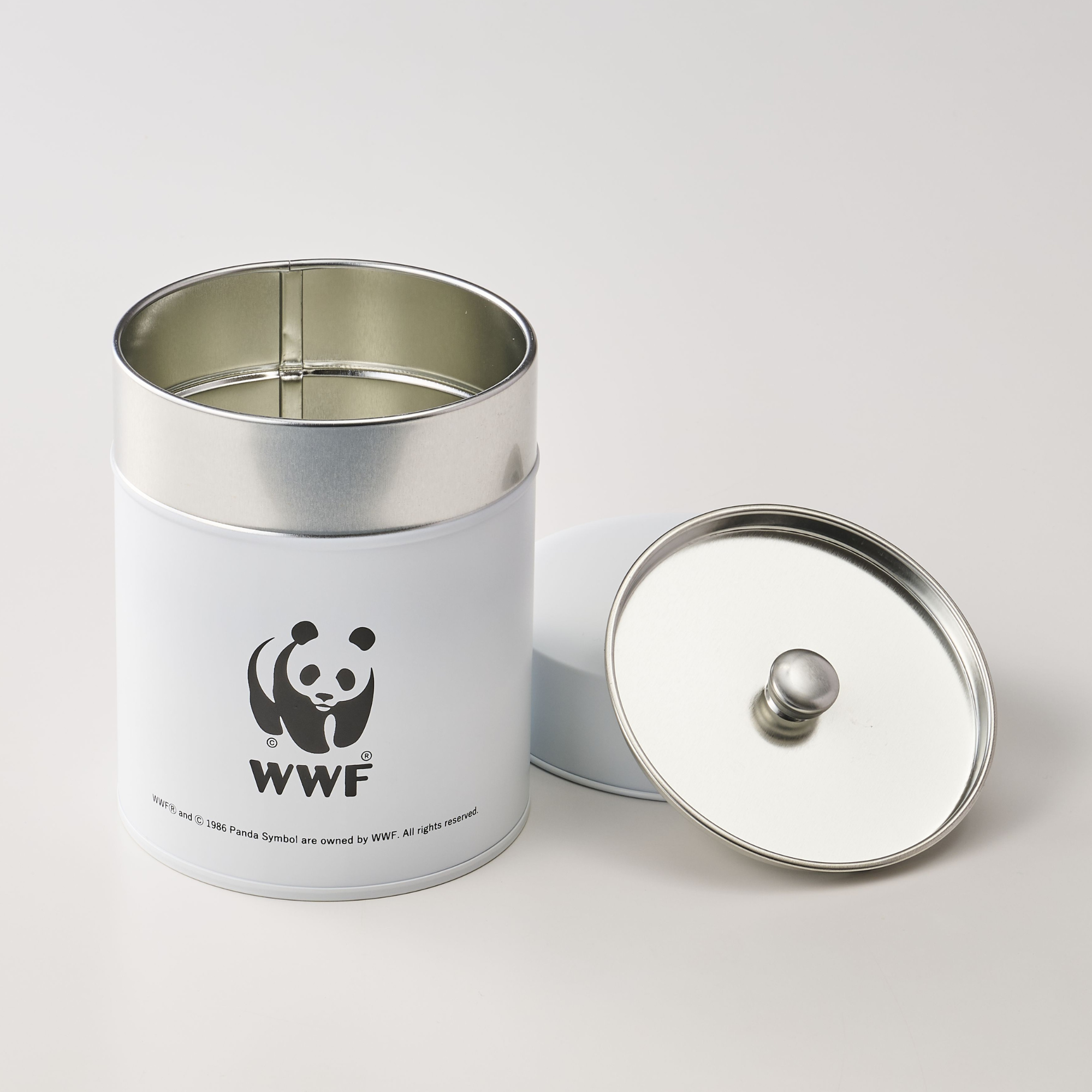 ブレンドコーヒーと一緒にお届けする茶筒タイプの保存缶は、指紋が付きにくい、つや消しのホワイト地にパンダロゴをプリントしたオリジナルアイテムです♪(キャニスターの単品販売はこちら)